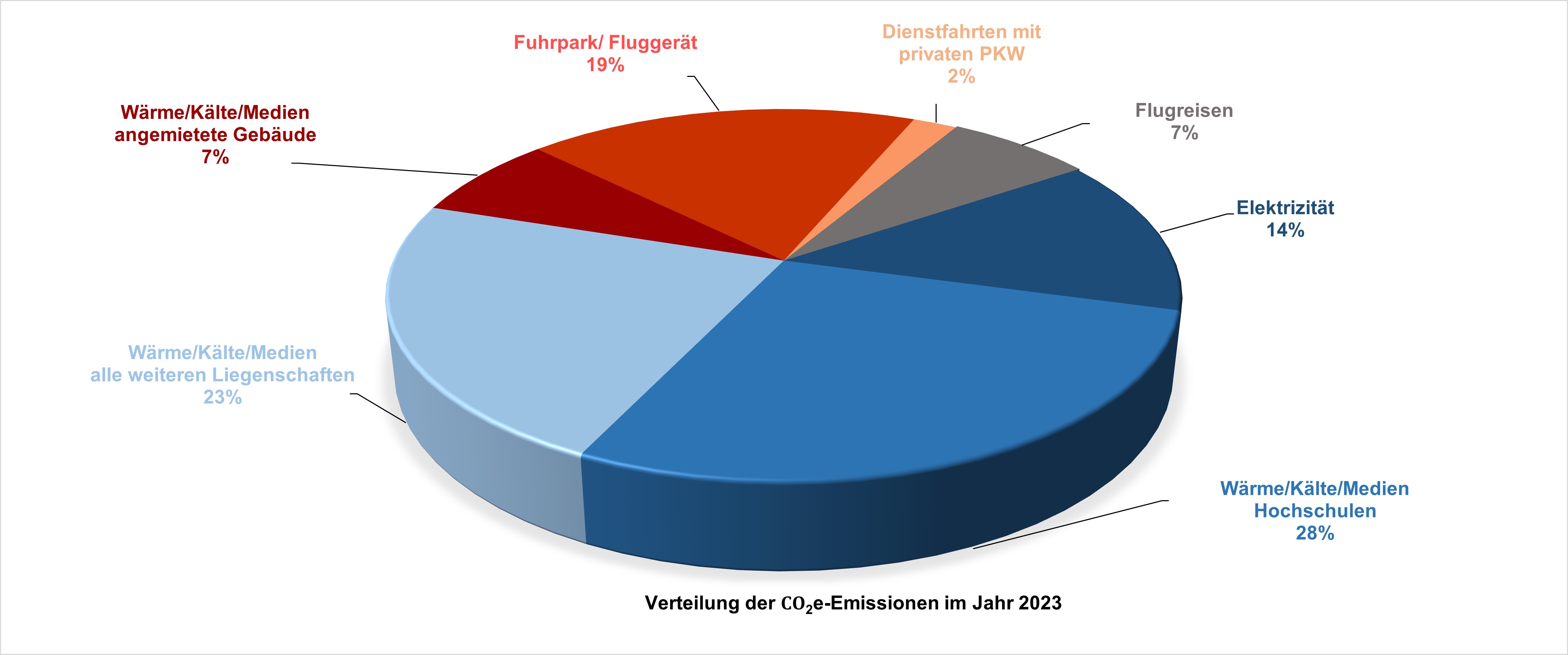 Den größten Anteil der Emissionen verursacht die Versorgung der Gebäude mit Wärme und Strom mit einem Anteil von rund 72 Prozent. 28 Prozent der Emissionen, die in der hessischen Landesverwaltung verursacht werden, sind den Dienstreisen per PKW, Bahn oder Flugzeug zuzuschreiben.