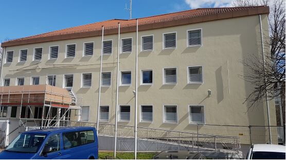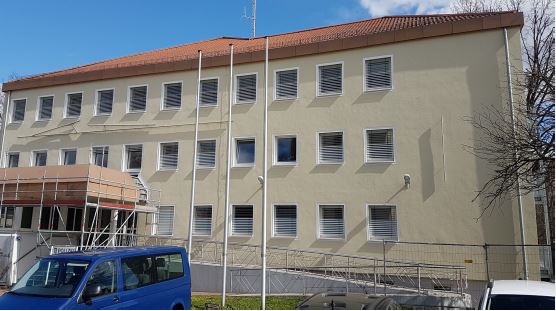 Eine energetische Sanierung der gesamten Außenhülle, der Einbau einer Pelletkessel-Anlage und die Installation einer Photovoltaik-Anlage sorgen für einen klimaneutralen Gebäudebetrieb der Polizeidirektion Werra-Meißner und der Polizeistation Eschwege.