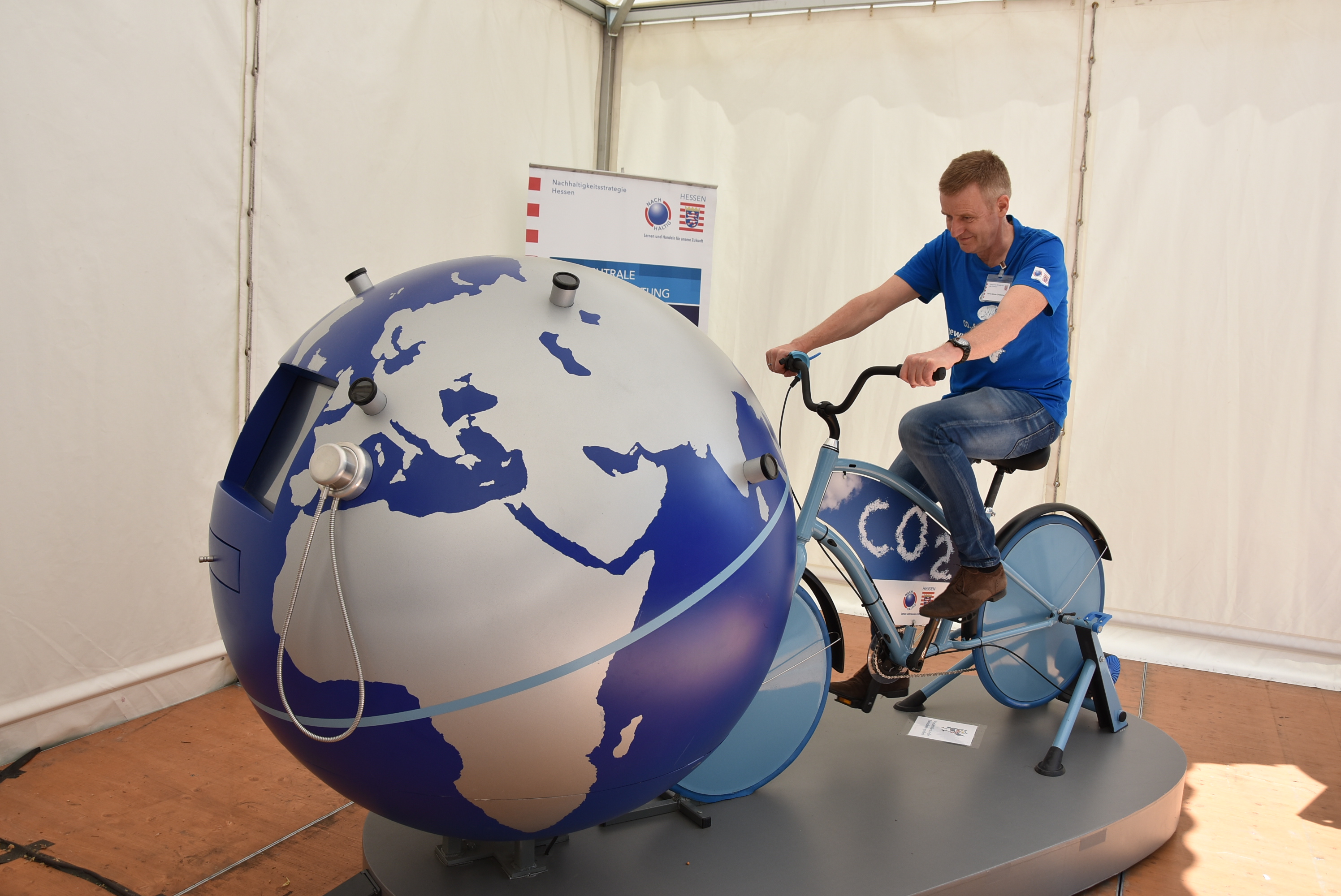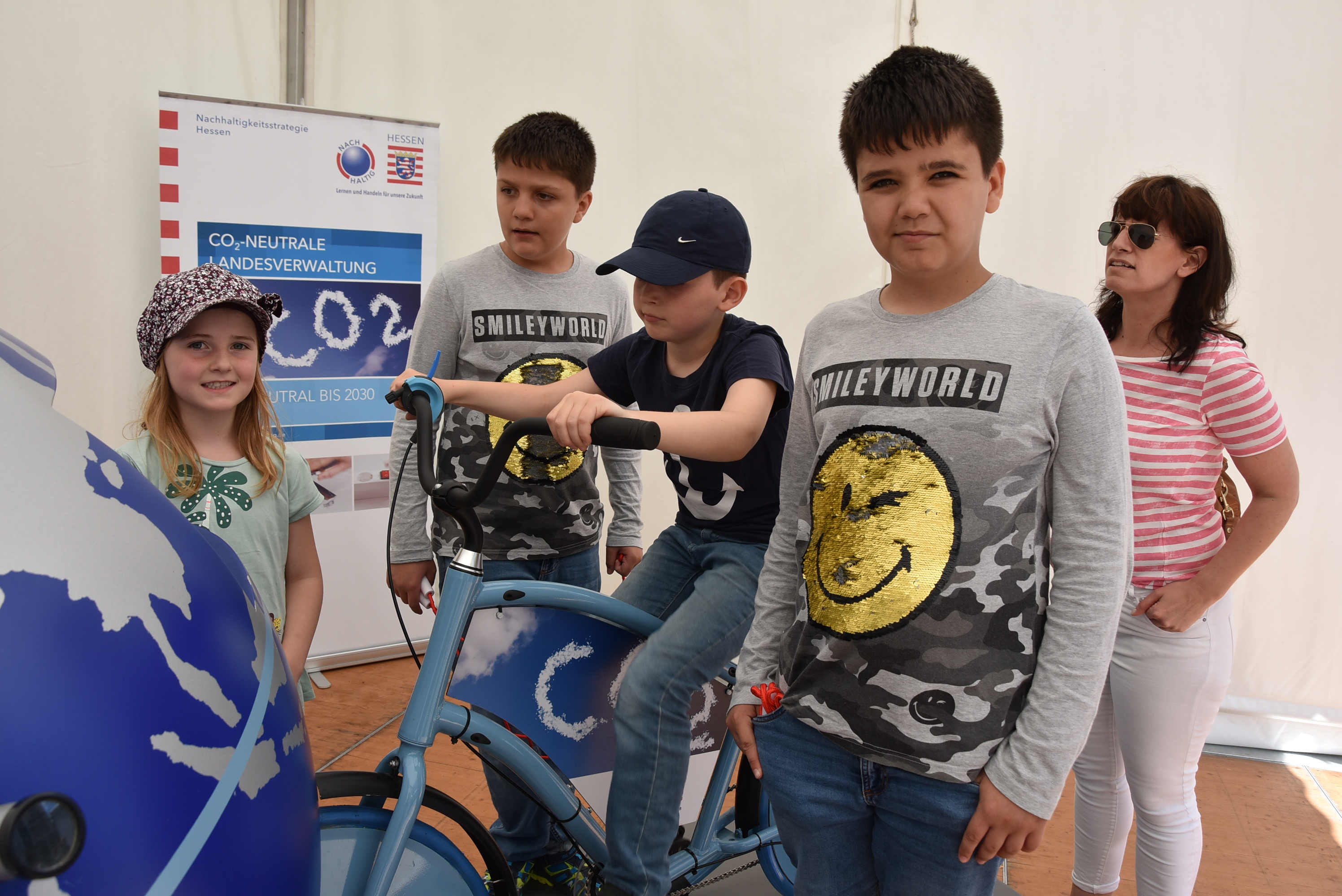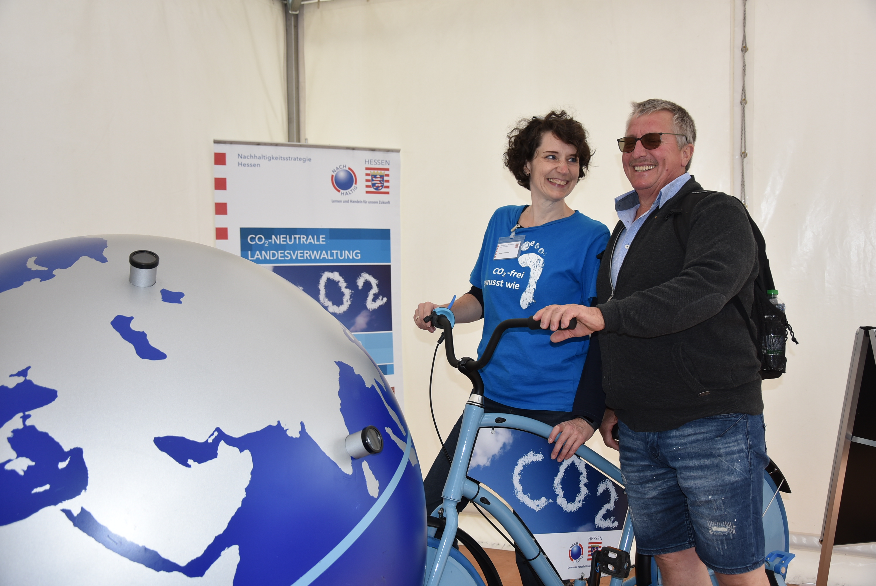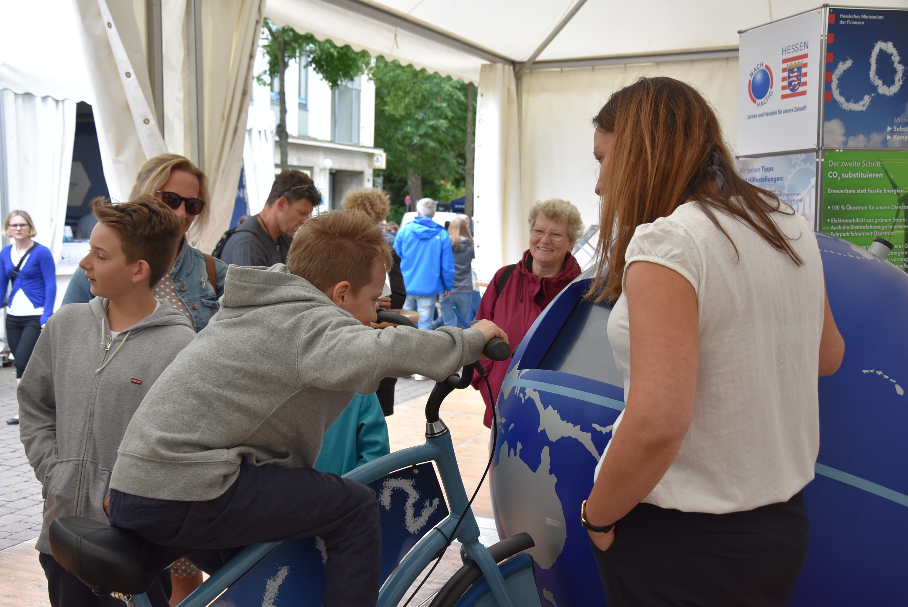 Die interaktive Wanderausstellung der CO2-neutralen Landesverwaltung auf dem Freigelände der Landesausstellung am Hessentag in Bad Hersfeld.